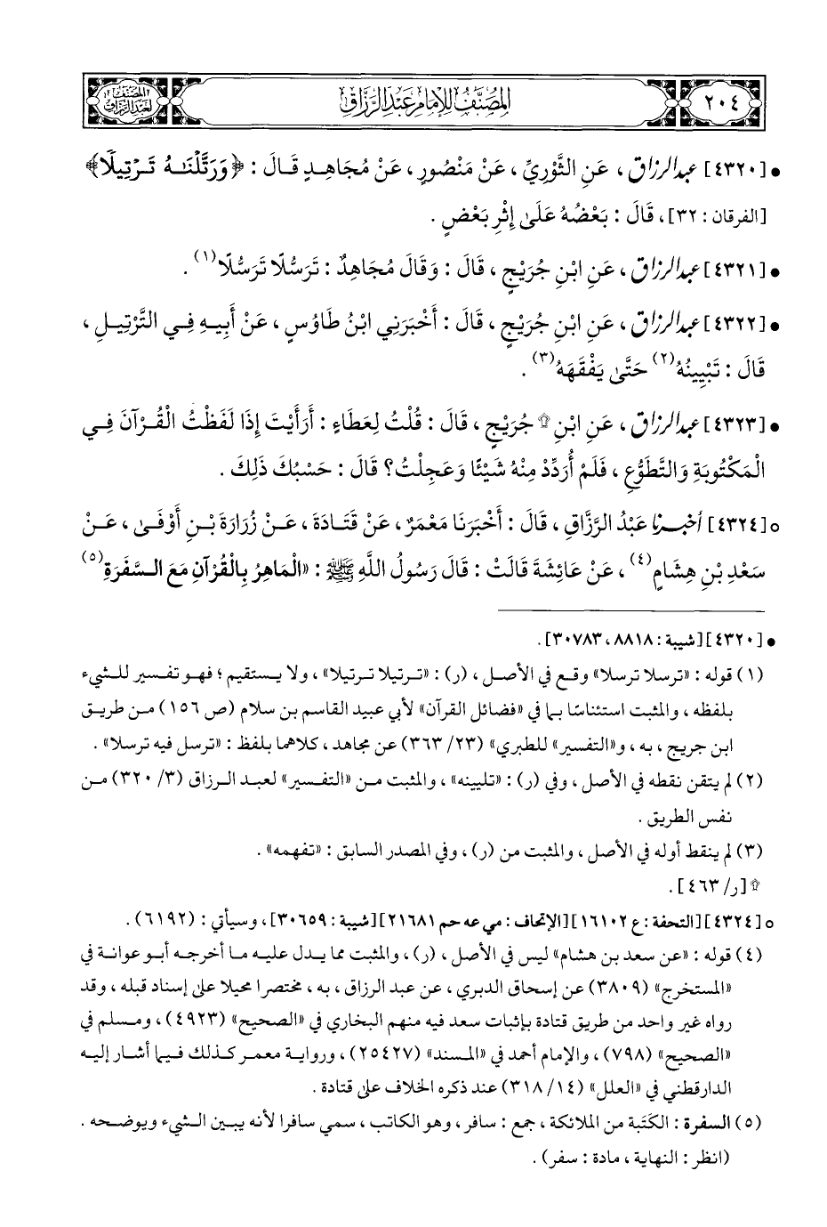 • [٤٣٢١] عبد الرزاق، عَنِ ابْنِ جُرَيْجٍ، قَالَ: وَقَالَ مُجَاهِدٌ: تَرَسُّلًا تَرَسُّلًا (¬١).