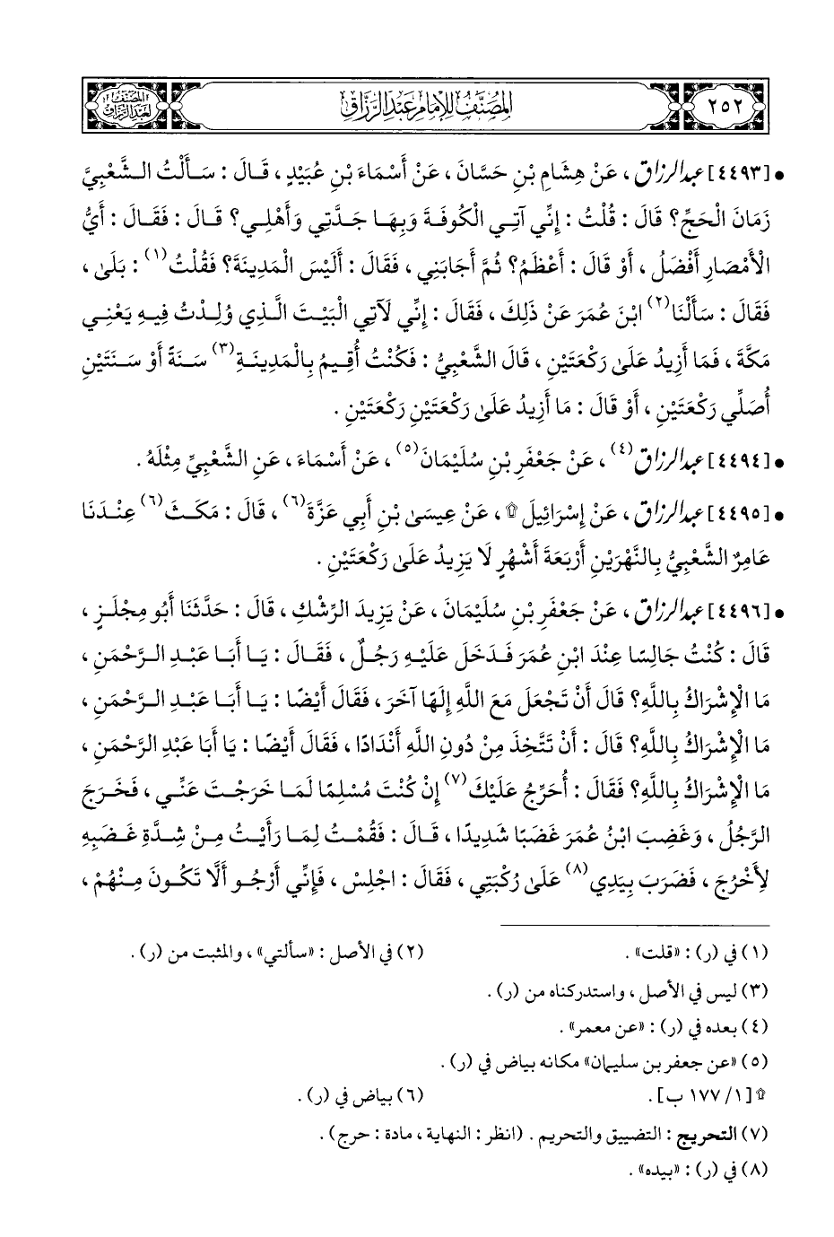 • [٤٤٩٤] عبد الرزاق (¬٤)، عَنْ جَعْفَرِ بْنِ سُلَيْمَانَ (¬٥)، عَنْ أَسْمَاءَ، عَنِ الشَّعْبِيِّ مِثْلَهُ.