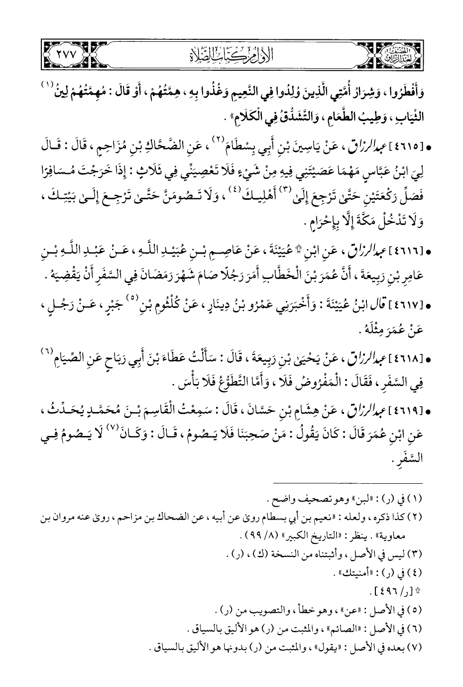 • [٤٦١٩] عبد الرزاق، عَنْ هِشَامِ بْنِ حَسَّانَ، قَالَ: سَمِعْتُ الْقَاسِمَ بْنَ مُحَمَدٍ يُحَدِّثُ، عَنِ ابْنِ عُمَرَ قَالَ: كَانَ يَقُولُ: مَنْ صَحِبَنَا فَلَا يَصُومُ، قَالَ: وَكَانَ (¬٧) لَا يَصومُ فِي السَّفَرِ.