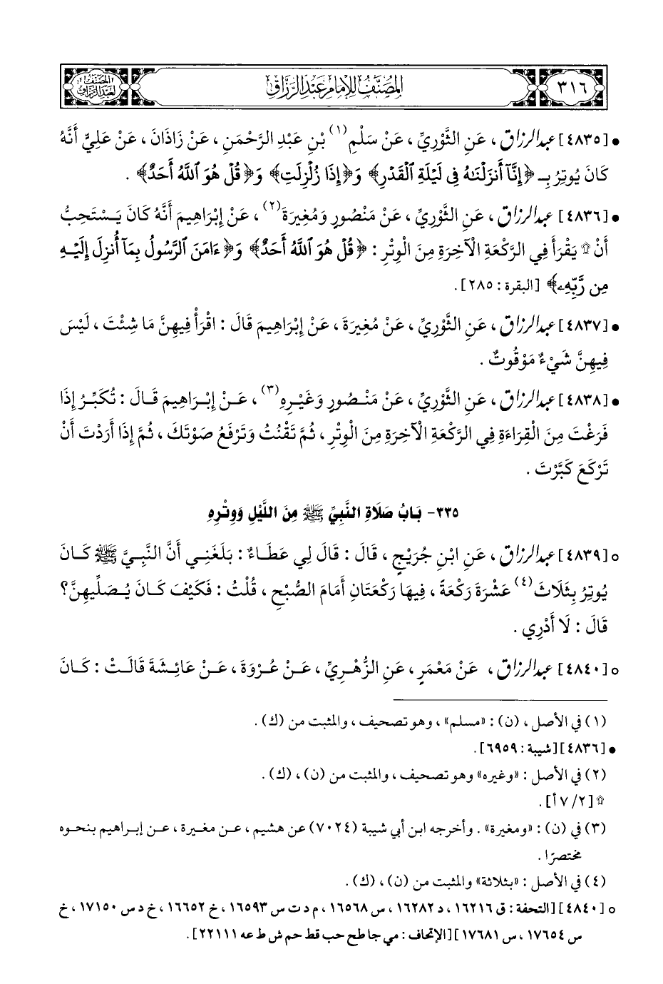 ° [٤٨٣٩] عبد الرزاق، عَنِ ابْنِ جُرَيْجٍ، قَالَ: قَالَ لِي عَطَاءٌ: بَلَغَنِي أَنَّ النَّبِيَّ - صلى الله عليه وسلم - كَانَ يُوتِرُ بِثَلَاثَ (¬٤) عَشْرَةَ رَكْعَةً، فِيهَا رَكْعَتَانِ أَمَامَ الصُّبْحِ، قُلْتُ: فَكَيْفَ كَانَ يُصَلِّيهِنَّ؟ قَالَ: لَا أَدْرِي.