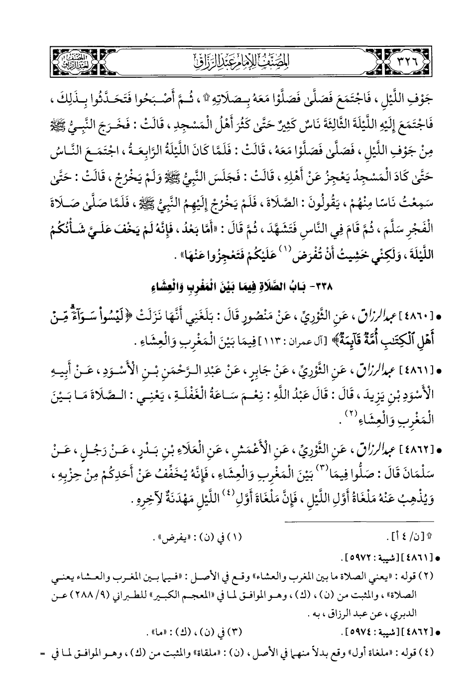 • [٤٨٦١] عبد الرزاق، عَنِ الثَّوْريِّ، عَنْ جَابِرٍ، عَنْ عَبْدِ الرَّحْمَنِ بْنِ الْأَسْودِ، عَنْ أَبِيهِ الْأَسْوَدِ بْنِ يَزِيدَ، قَالَ: قَالَ عَبْدُ اللهِ: نِعْمَ سَاعَةُ الْغَفْلَةِ، يَعْنِي: الصَّلَاةَ مَا بَيْنَ الْمَغْرِبِ وَالْعِشَاءِ (¬٢).