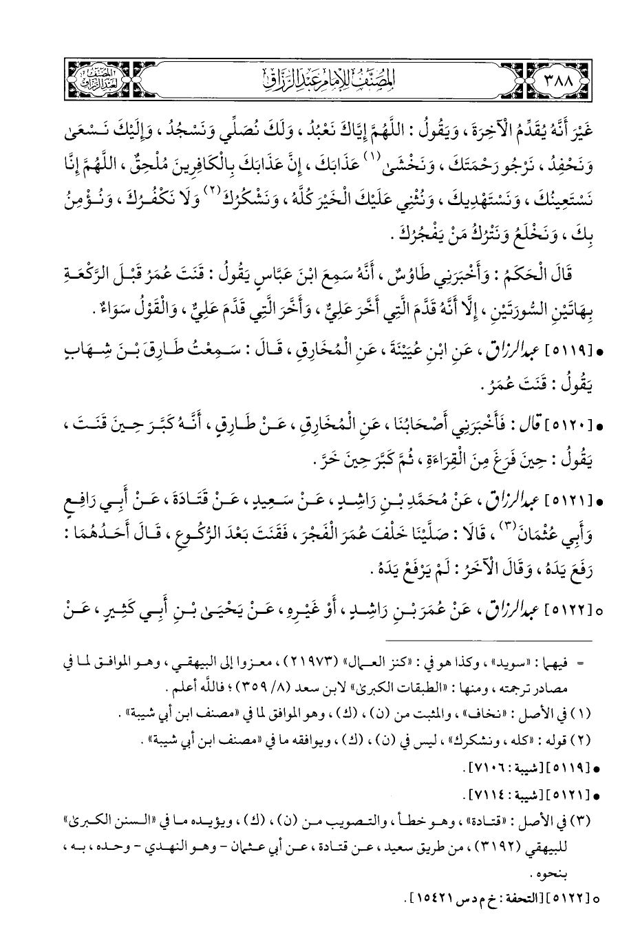 • [٥١١٩] عبد الرزاق، عَنِ ابْنِ عُيَيْنَةَ، عَنِ الْمُخَارِقِ، قَالَ: سَمِعْتُ طَارِقَ بْنَ شِهَابٍ يَقُولُ: قَنَتَ عُمَرُ.