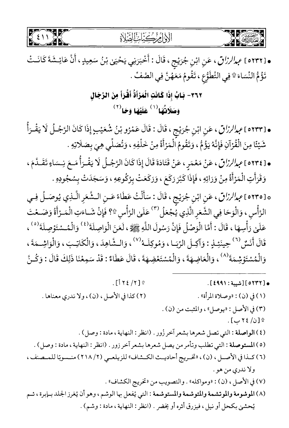 (¬٤) الواصلة: التي تصل شعرها بشعر آخر زُور. (انظر: النهاية، مادة: وصل).