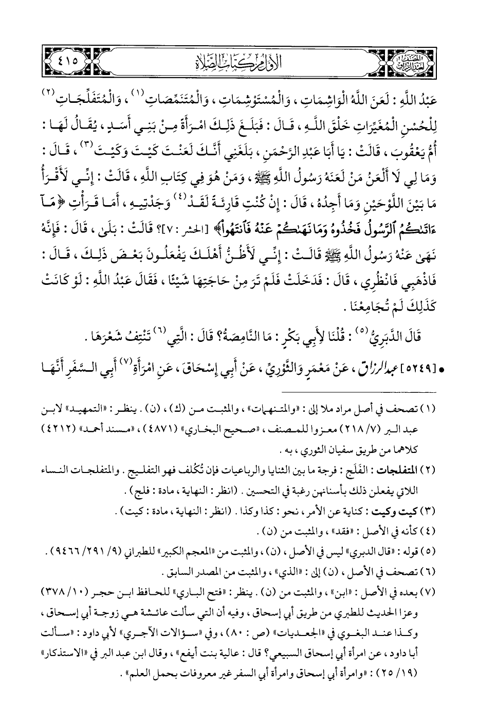 • [٥٢٤٩] عبد الرزاق، عَنْ مَعْمَرٍ وَالثَّوْريِّ، عَنْ أَبِي إِسْحَاقَ، عَنِ امْرَأَةِ (¬٧) أَبِي السَّفَرِ أَنَّهَا