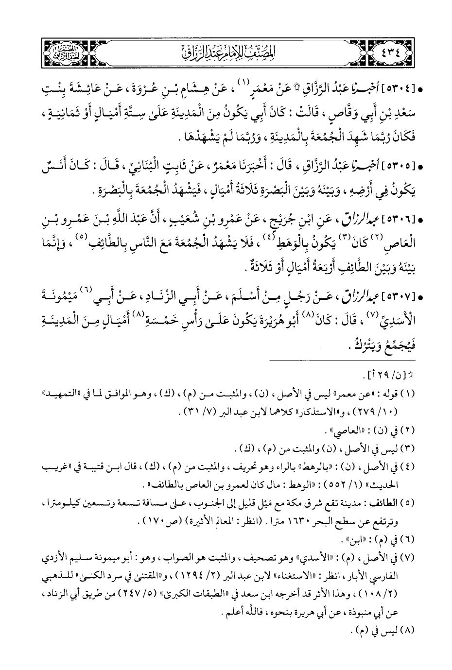 • [٥٣٠٧] عبد الرزاق، عَنْ رَجُلٍ مِنْ أَسْلَمَ، عَنْ أَبِي الزِّنَادِ، عَنْ أَبِي (¬٦) مَيْمُونَةَ الْأَسَدِيِّ (¬٧)، قَالَ: كَانَ (¬٨) أَبُو هُرَيْرَةَ يَكُونَ عَلَى رَأْسِ خَمْسَةِ (¬٨) أَمْيَالٍ مِنَ الْمَدِينَةِ فَيُجَمِّعُ يَتْرُكُ.