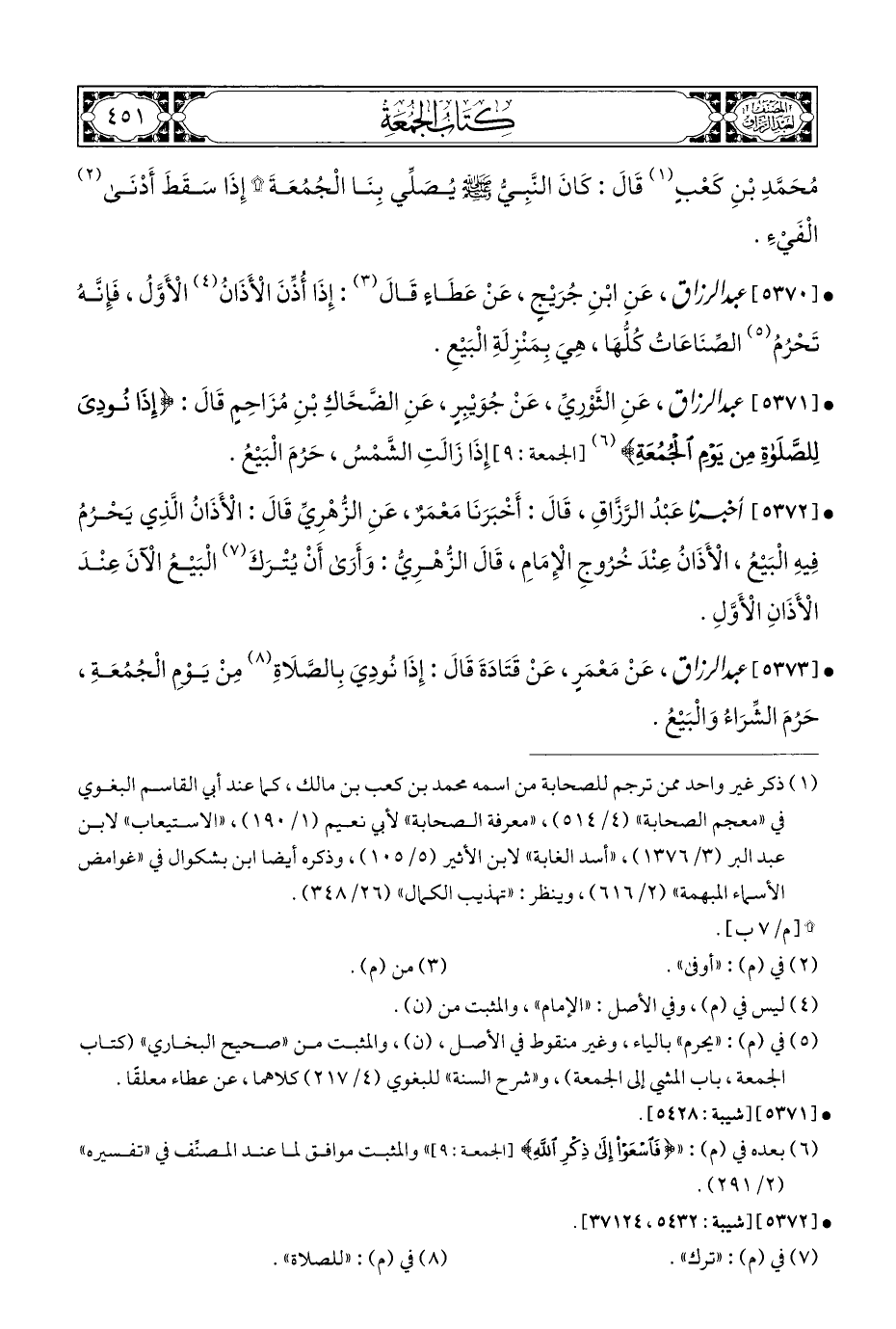 • [٥٣٧٠] عبد الرزاق، عَنِ ابْنِ جُرَيْجٍ، عَنْ عَطَاءٍ قَالَ (¬٣): إِذَا أُذِّنَ الْأَذَانُ (¬٤) الْأَوَّلُ، فَإِنَّهُ تَحْرُمُ (¬٥) الصِّنَاعَاتُ كُلُّهَا، هِيَ بِمَنْزِلَةِ الْبَيْعِ.