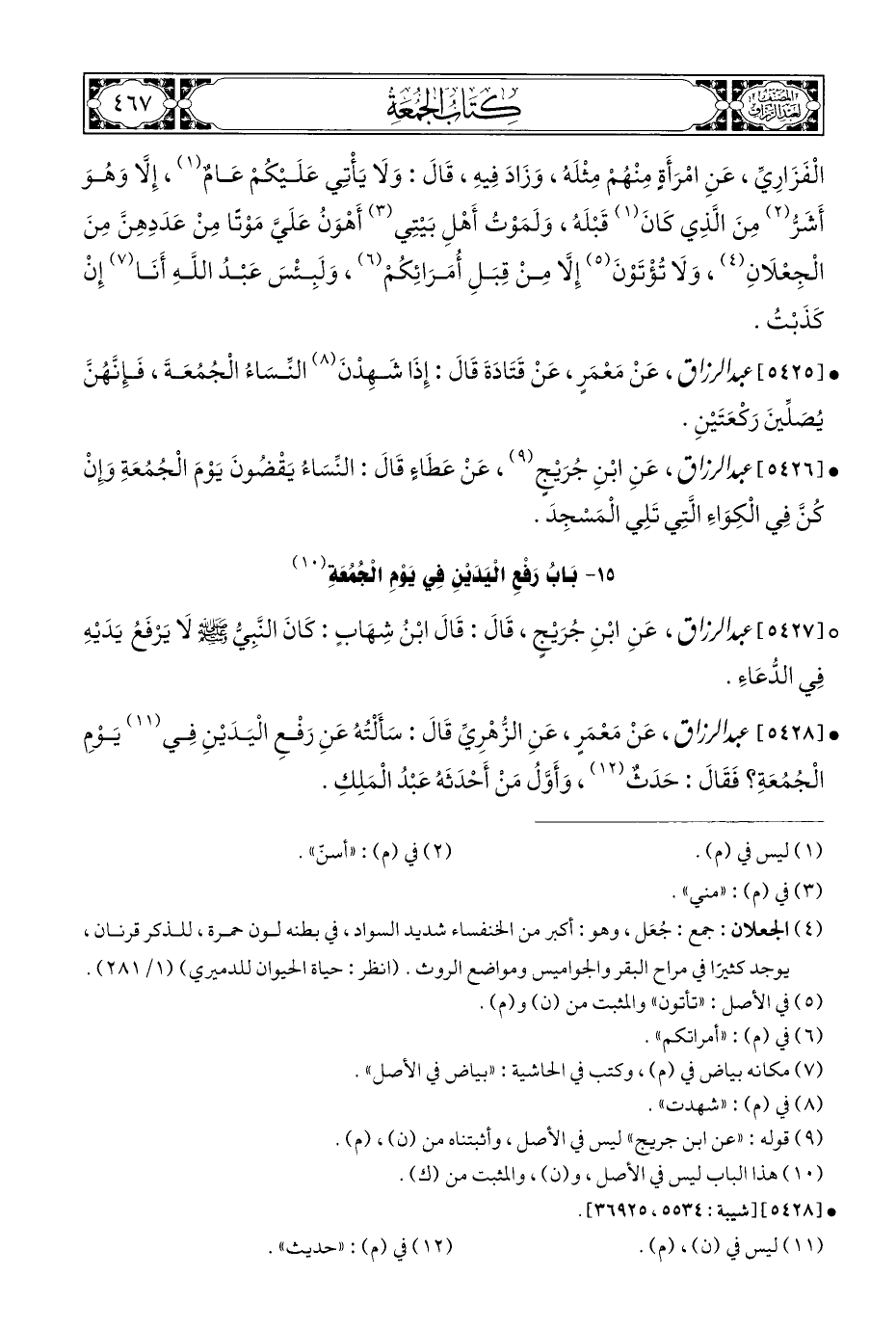 • [٥٤٢٨] عبد الرزاق، عَنْ مَعْمَرٍ، عَنِ الزُّهْرِيِّ قَالَ: سَأَلْتُهُ عَنِ رَفْعِ الْيَدَيْنِ فِي (¬١١) يَوْمِ الْجُمُعَةِ؟ فَقَالَ: حَدَثٌ (¬١٢)، وَأَوَّلُ مَنْ أَحْدَثَهُ عَبْدُ الْمَلِكِ.