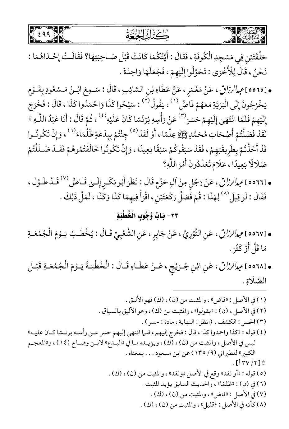 • [٥٥٦٧] عبد الرزاق، عَنِ الثَّوْريِّ، عَنْ جَابِرٍ، عَنِ الشَّعْبِيِّ قَالَ: يُخطَبُ يَوْمَ الْجُمُعَةِ مَا قَلَّ أَوْ كَثُرَ.