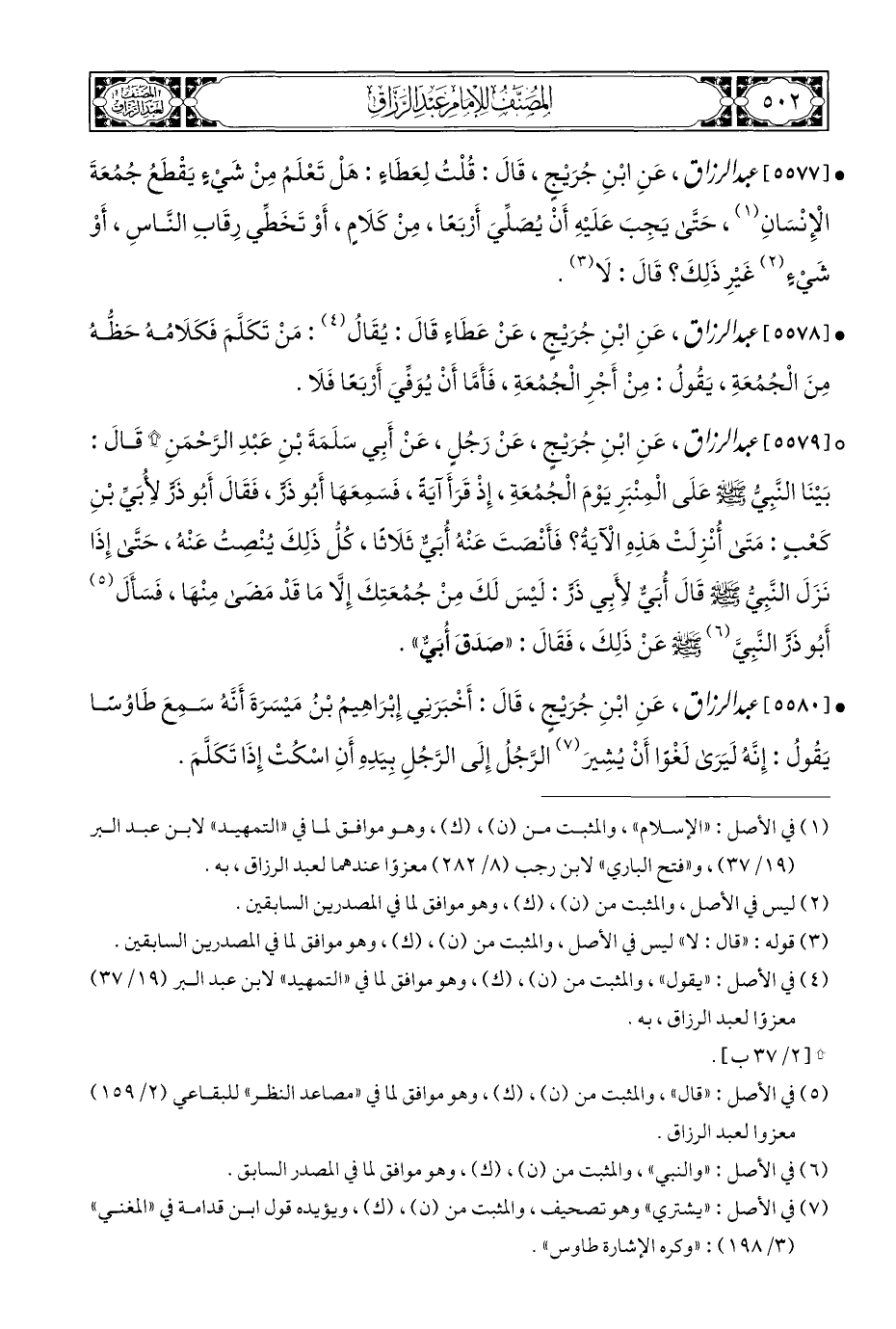 • [٥٥٧٨] عبد الرزاق، عَنِ ابْنِ جُرَيْجٍ، عَنْ عَطَاءٍ قَالَ: يُقَالُ (¬٤): مَنْ تَكَلَّمَ فَكَلَامُهُ حَظُّهُ مِنَ الْجُمُعَةِ، يَقُولُ: مِنْ أَجْرِ الْجُمُعَةِ، فَأَمَّا أَنْ يُوَفِّي أَرْبَعًا فَلَا.