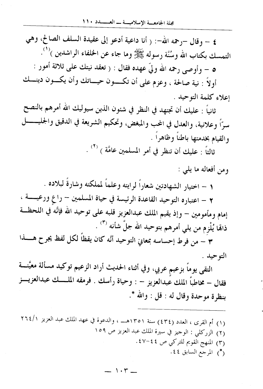 1 أم القرى، العدد (434) سنة 1351هـ، والدعوة في عهد الملك عبد العزيز 1/264