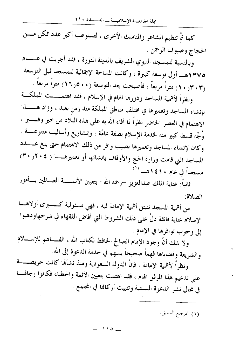 ونظراً لأهمية المساجد ودورها الهام في الإسلام، فقد اهتمت المملكة بإنشاء المساجد وتعميرها في مختلف مناطق المملكة منذ زمنٍ بعيد، وزاد هذا الاهتمام في العصر الحاضر نظراً لما أفاء الله به على هذه البلاد من خير وفير، وُجِّه قسط كبير منه لخدمة الإسلام بصفة عامَّة، وبمشاريع وأساليب متنوعة. وكان لإنشاء المساجد وتعميرها نصيب وافر من ذلك الاهتمام حتى بلغ عدد المساجد التي قامت وزارة الحج والأوقاف بإنشائها أو تعميرها (204ر30) مسجداً في عام 1410هـ1