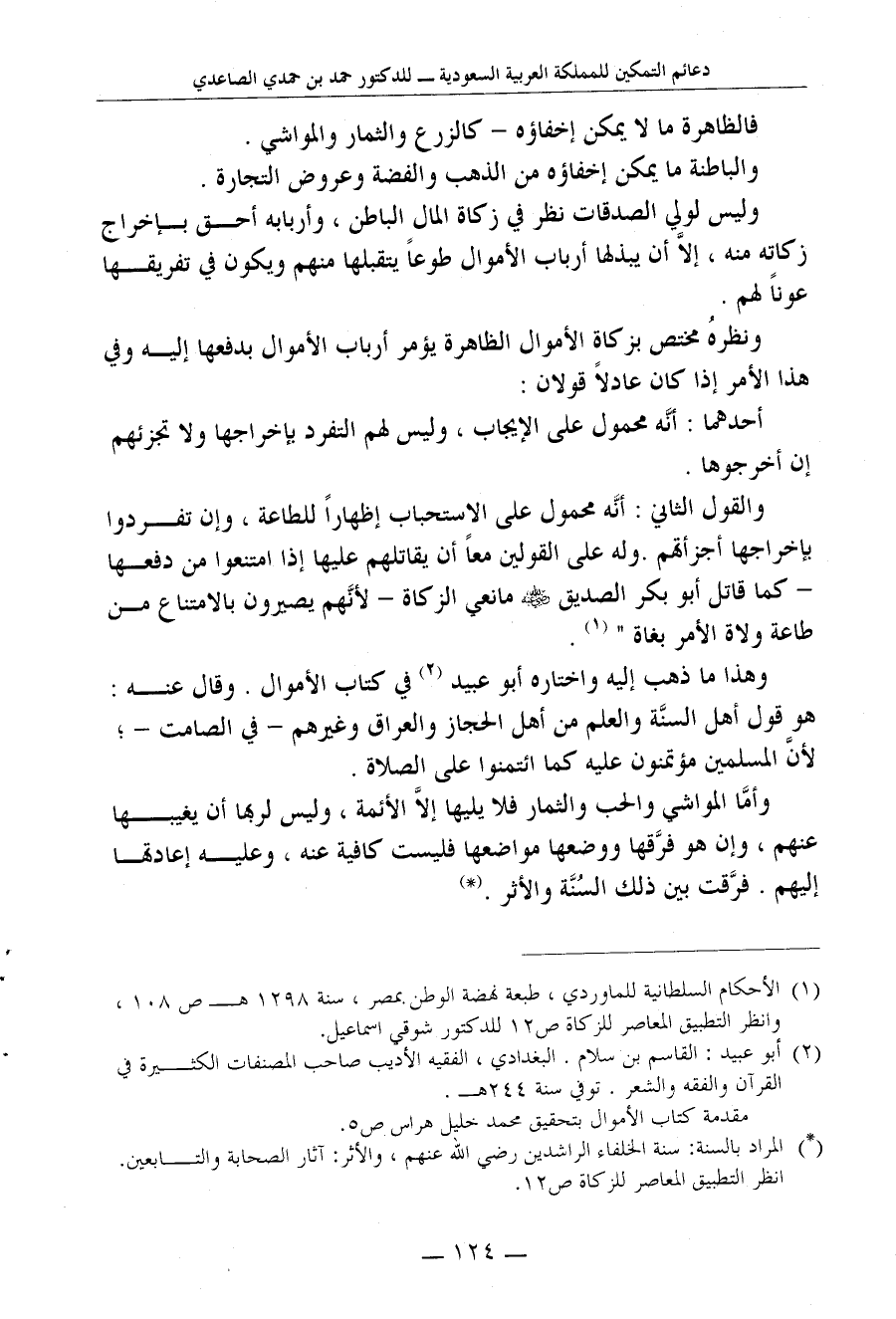 1 الأحكام السلطانية للماوردي، طبعة نهضة الوطن بمصر، سنة 1298 هـ ص 108، وانظر التطبيق المعاصر للزكاة ص12 للدكتور شوقي إسماعيل.