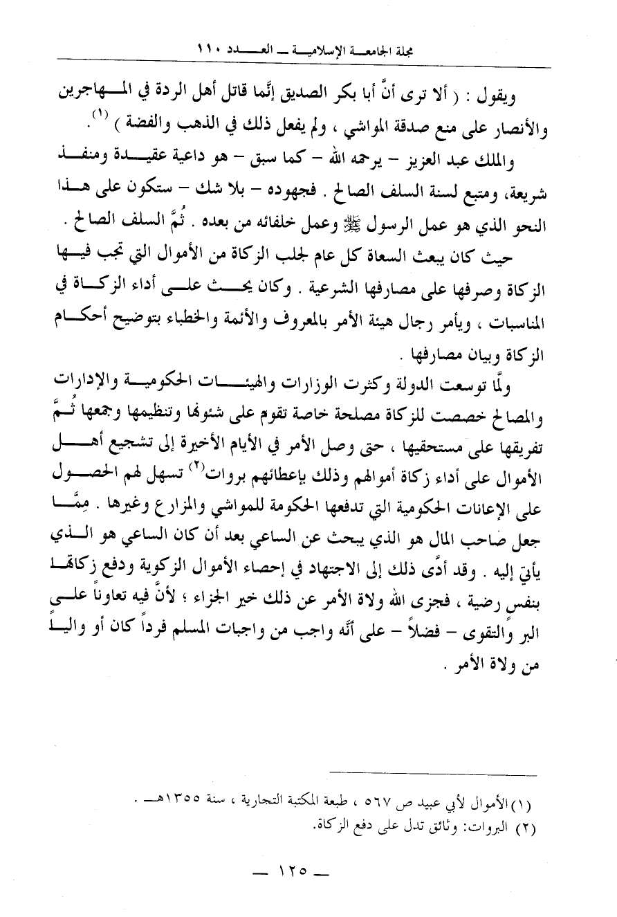 ولمَّا توسعت الدولة وكثرت الوزارات والهيئات الحكومية والإدارات والمصالح خصصت للزكاة مصلحة خاصة تقوم على شئونها وتنظيمها وجمعها ثُمَّ تفريقها على مستحقيها، حتى وصل الأمر في الأيام الأخيرة إلى تشجيع أهل الأموال على أداء زكاة أموالهم وذلك بإعطائهم بروات2 تسهل لهم الحصول على الإعانات الحكومية التي تدفعها الحكومة للمواشي والمزارع وغيرها. مِمَّا جعل صاحب المال هو الذي يبحث عن الساعي بعد أن كان الساعي هو الذي يأتي إليه. وقد أدَّى ذلك إلى الاجتهاد في إحصاء الأموال الزكوية ودفع زكاتها بنفسٍ رضية، فجزى الله ولاة الأمر عن ذلك خير الجزاء؛ لأنَّ فيه تعاوناً على البر والتقوى - فضلاً - على أنَّه واجب من واجبات المسلم فرداً كان أو والياً من ولاة الأمر.