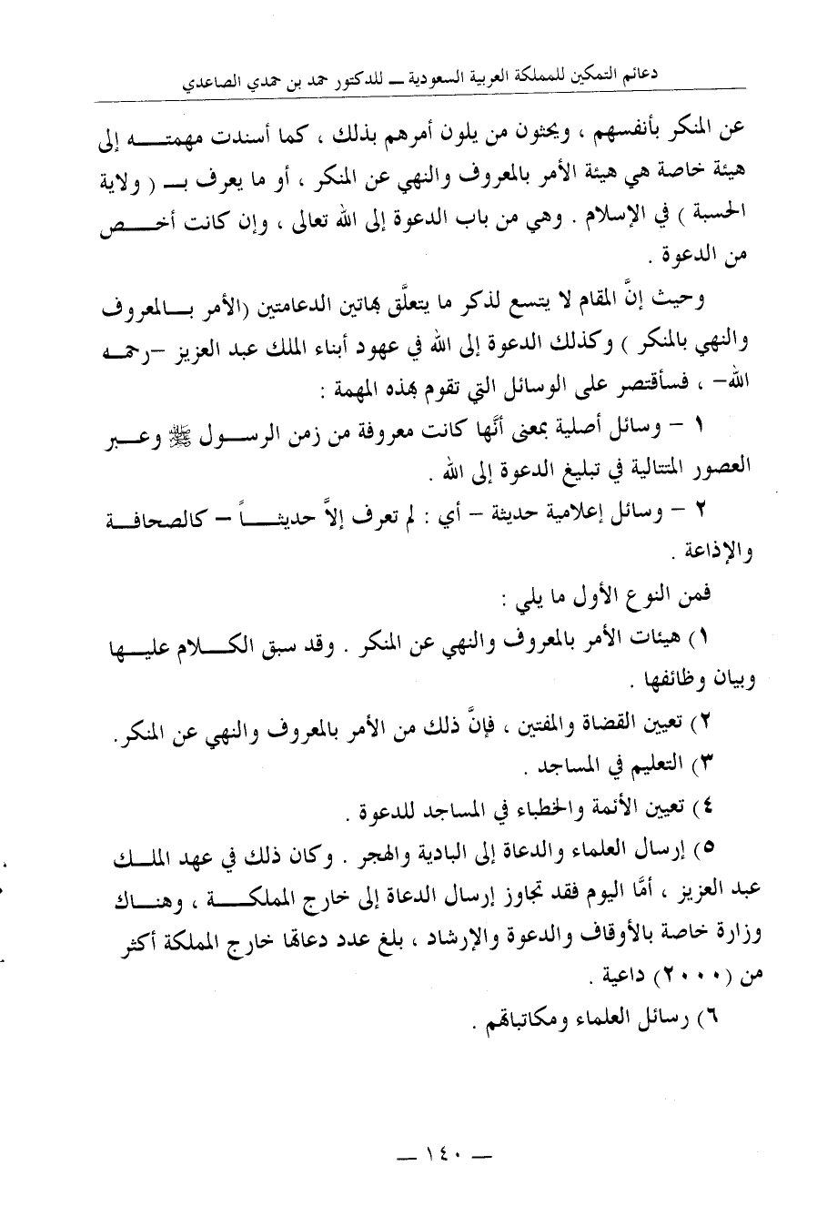 وحيث إنَّ المقام لا يتسع لذكر ما يتعلَّق بهاتين الدعامتين (الأمر بالمعروف والنهي بالمنكر) وكذلك الدعوة إلى الله في عهود أبناء الملك عبد العزيز -رحمه الله-، فسأقتصر على الوسائل التي تقوم بهذه المهمة: