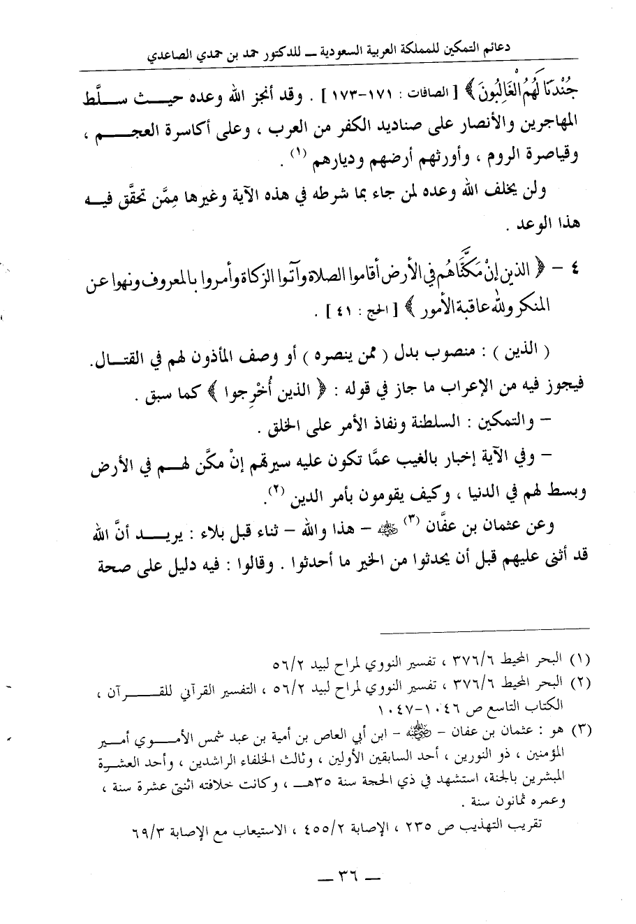 4 - {الَّذِينَ إِنْ مَكَّنَّاهُمْ فِي الأَرْضِ أَقَامُوا الصَّلاةَ وَآتَوُا الزَّكَاةَ وَأَمَرُوا بِالْمَعْرُوفِ وَنَهَوْا عَنِ الْمُنْكَرِ وَلِلَّهِ عَاقِبَةُ الأُمُورِ} [الحج: 41] .