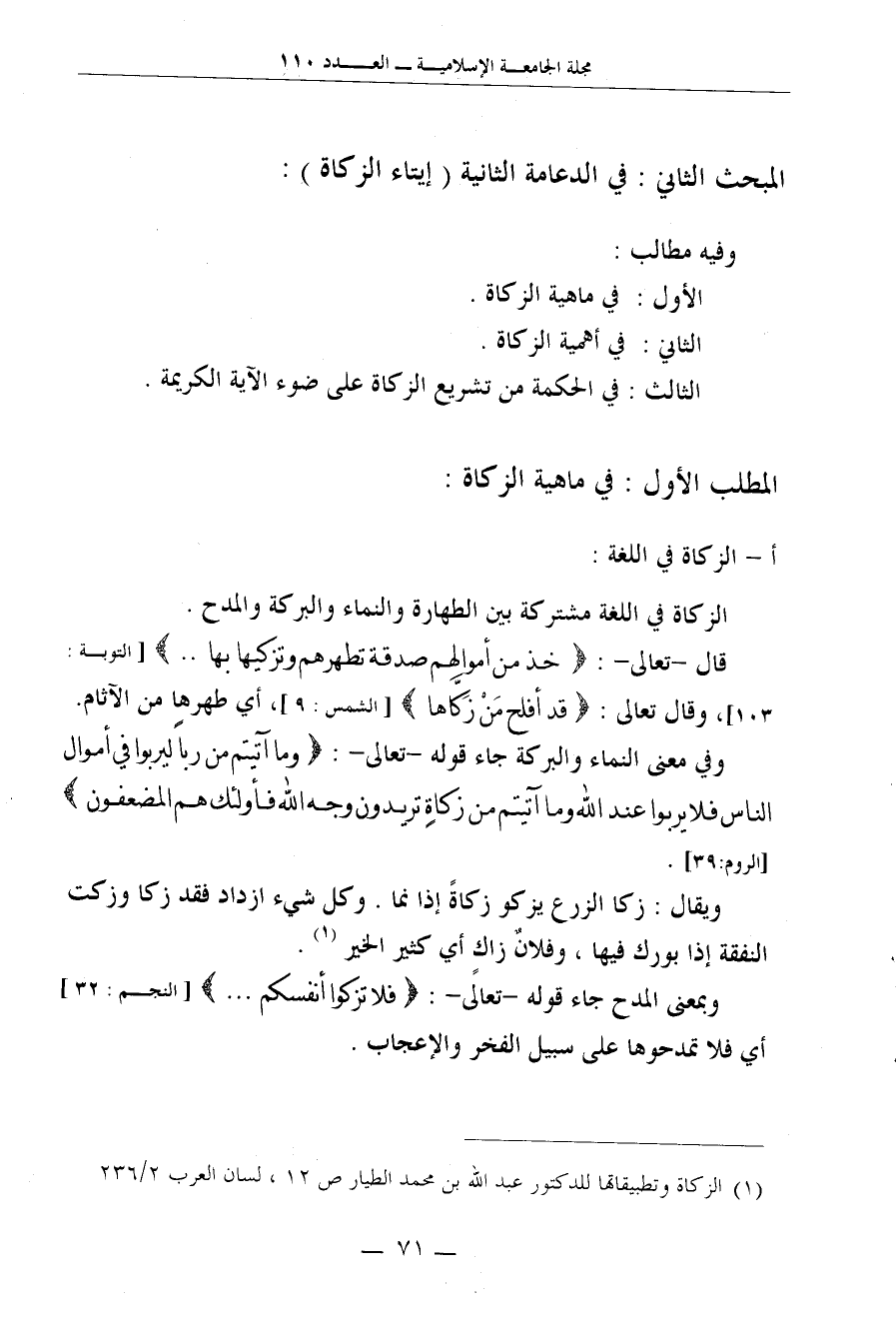 1 الزكاة وتطبيقاتها للدكتور عبد الله بن محمد الطيار ص 12، لسان العرب 2/236
