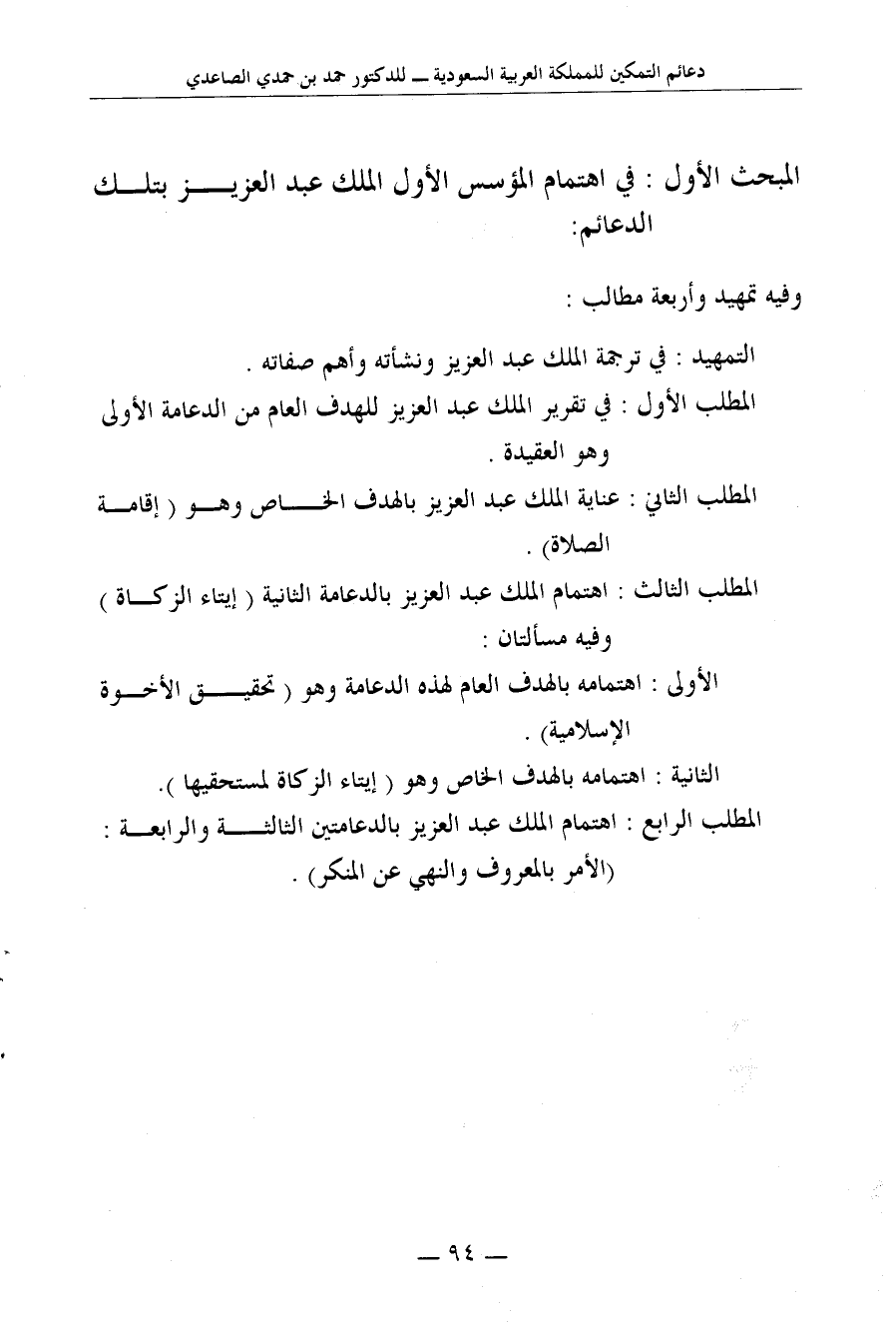 المبحث الأول: في اهتمام المؤسس الأول الملك عبد العزيز بتلك الدعائم