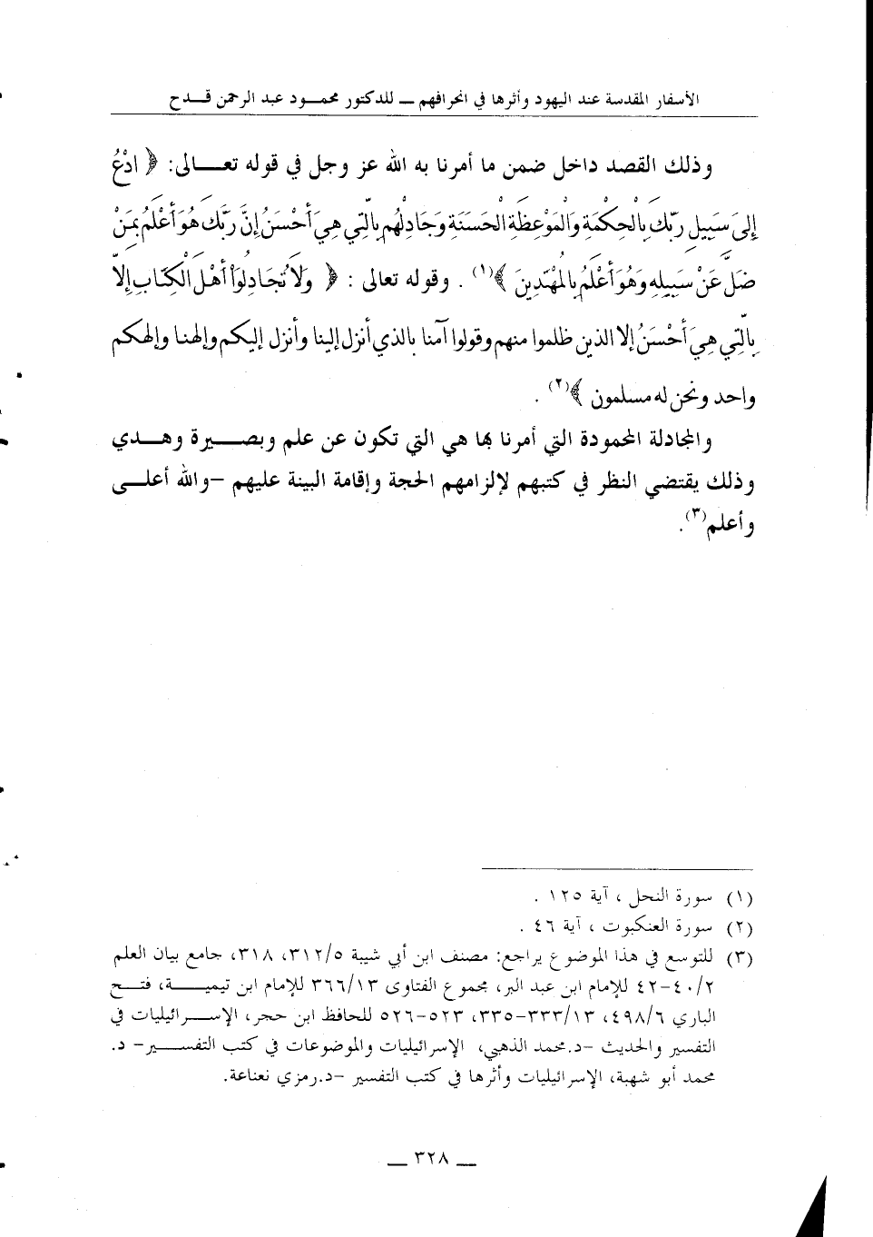 والمجادلة المحمودة التي أمرنا بها هي التي تكون عن علم وبصيرة وهدي وذلك يقتضي النظر في كتبهم لإلزامهم الحجة وإقامة البينة عليهم والله أعلى وأعلم3.