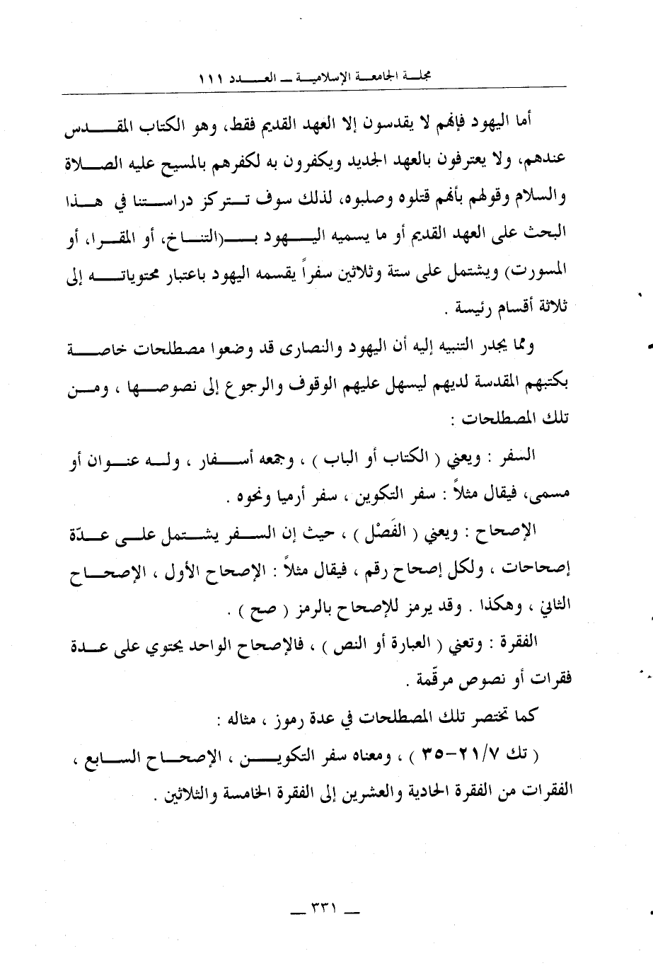 ومما يجدر التنبيه إليه أن اليهود والنصارى قد وضعوا مصطلحات خاصة بكتبهم المقدسة لديهم ليسهل عليهم الوقوف والرجوع إلى نصوصها، ومن تلك المصطلحات: