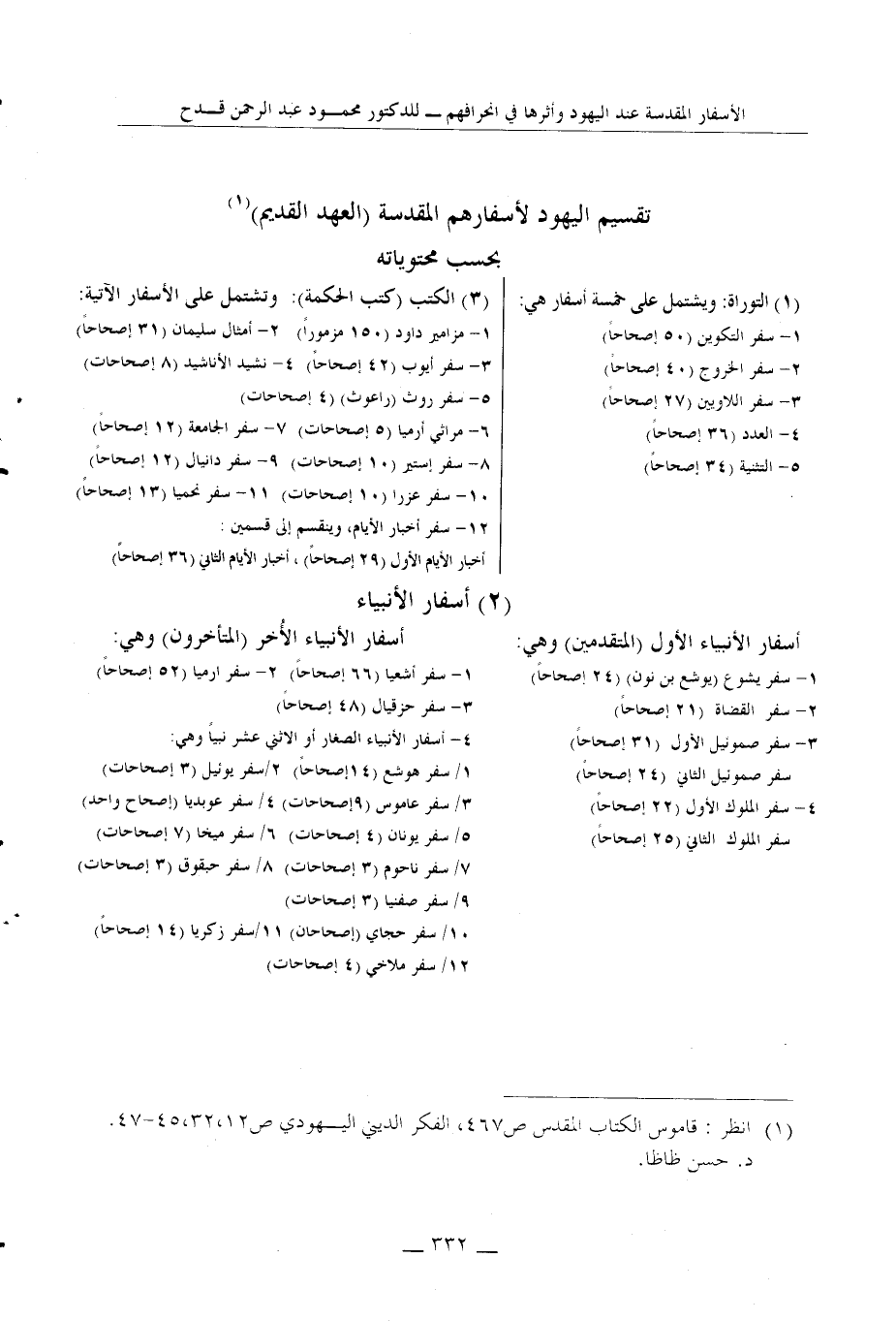 1 انظر: قاموس الكتاب المقدس ص467، الفكر الديني اليهودي ص12،32،45-47. د. حسن ظاظا.