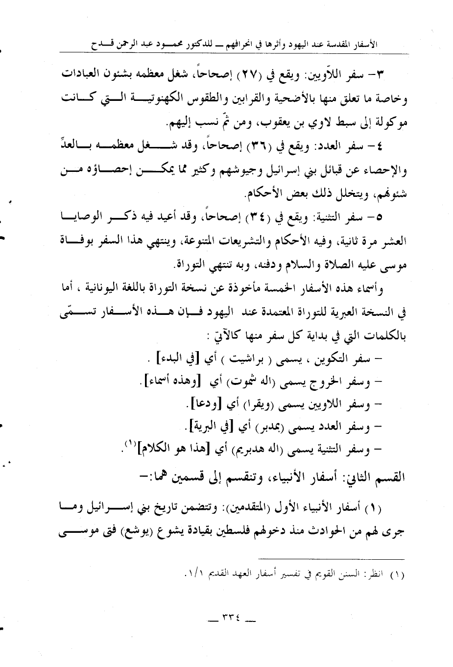 كتاب الأسفار المقدسة عند اليهود وأثرها في انحرافهم عرض ونقد