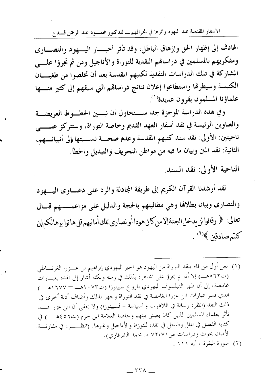 الهادف إلى إظهار الحق وإزهاق الباطل، وقد تأثر أحبار اليهود والنصارى ومفكريهم بالمسلمين في دراساتهم النقدية للتوراة والأناجيل ومن ثم تجرؤا على المشاركة في تلك الدراسات النقدية لكتبهم المقدسة بعد أن تخلصوا من طغيان الكنيسة وسيطرتها واستطاعوا إعلان نتائج دراساتهم التي سبقهم إلى كثير منها علماؤنا المسلمون بقرون عديدة1.