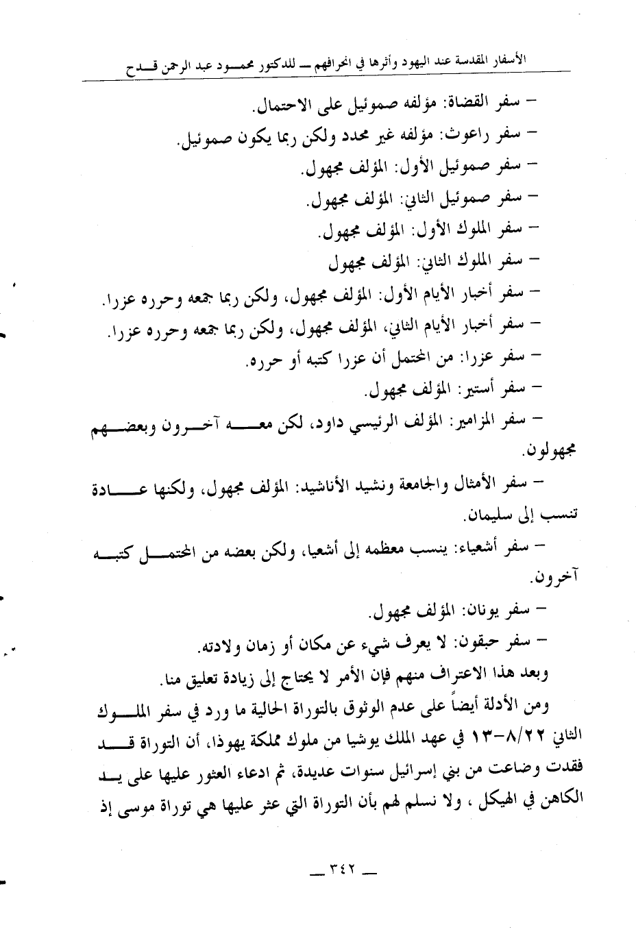 كتاب الأسفار المقدسة عند اليهود وأثرها في انحرافهم عرض ونقد
