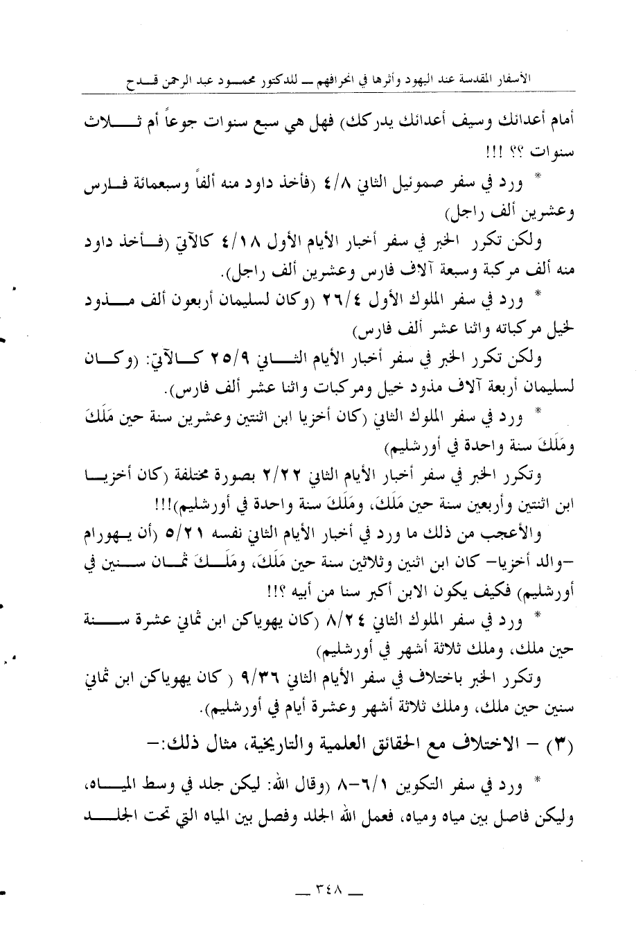 (3) - الاختلاف مع الحقائق العلمية والتاريخية، مثال ذلك:-