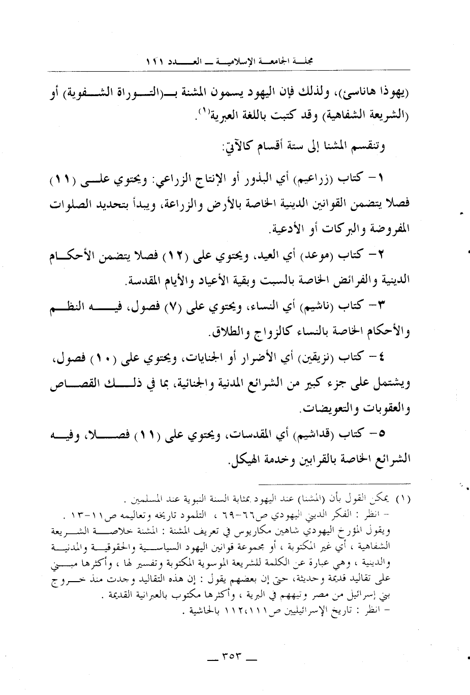 1 يمكن القول بأن (المشنا) عند اليهود بمثابة السنة النبوية عند المسلمين.