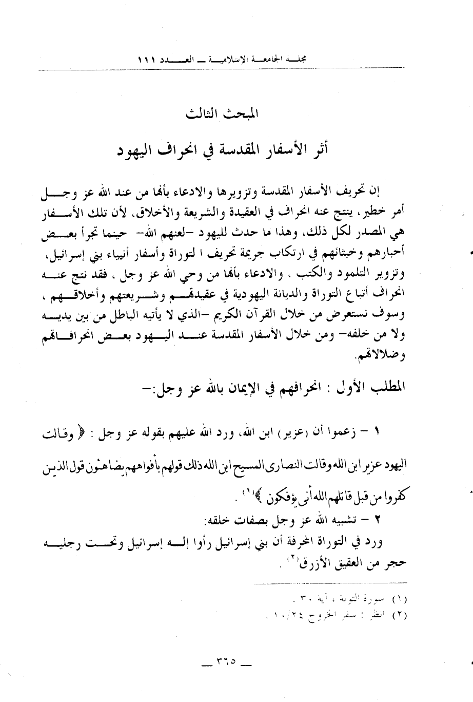 المبحث الثالث: أثر الأسفار المقدسة في انحراف اليهود
