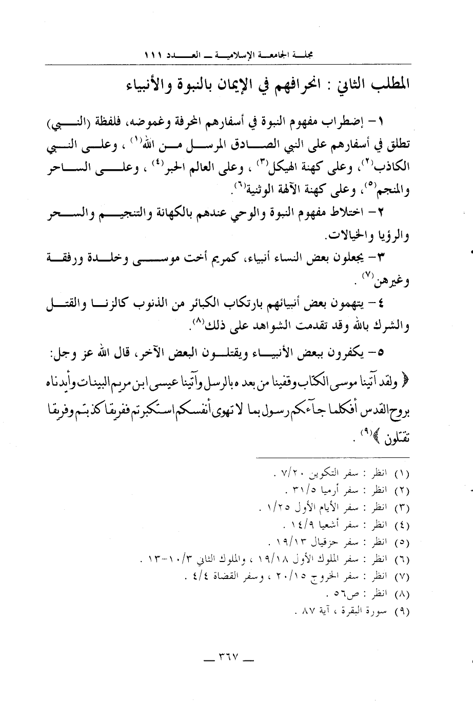 المطلب الثاني: انحرافهم في الإيمان بالنبوة والأنبياء