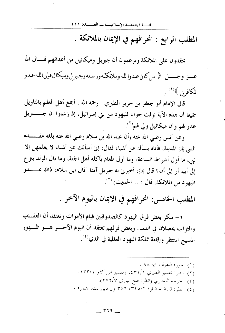 المطلب الرابع: انحرافهم في الإيمان بالملائكة.