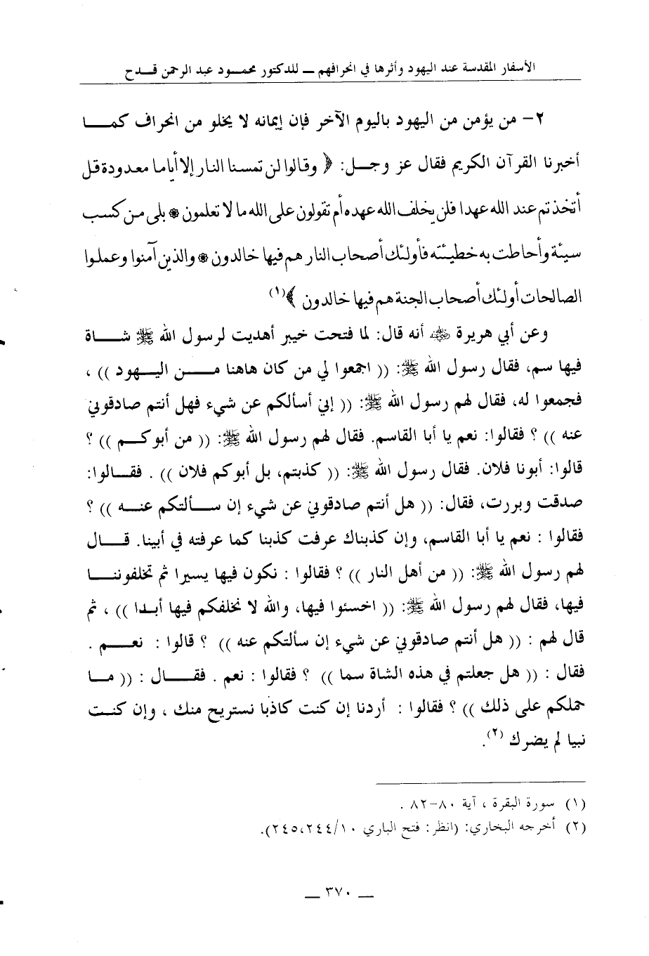 كتاب الأسفار المقدسة عند اليهود وأثرها في انحرافهم عرض ونقد