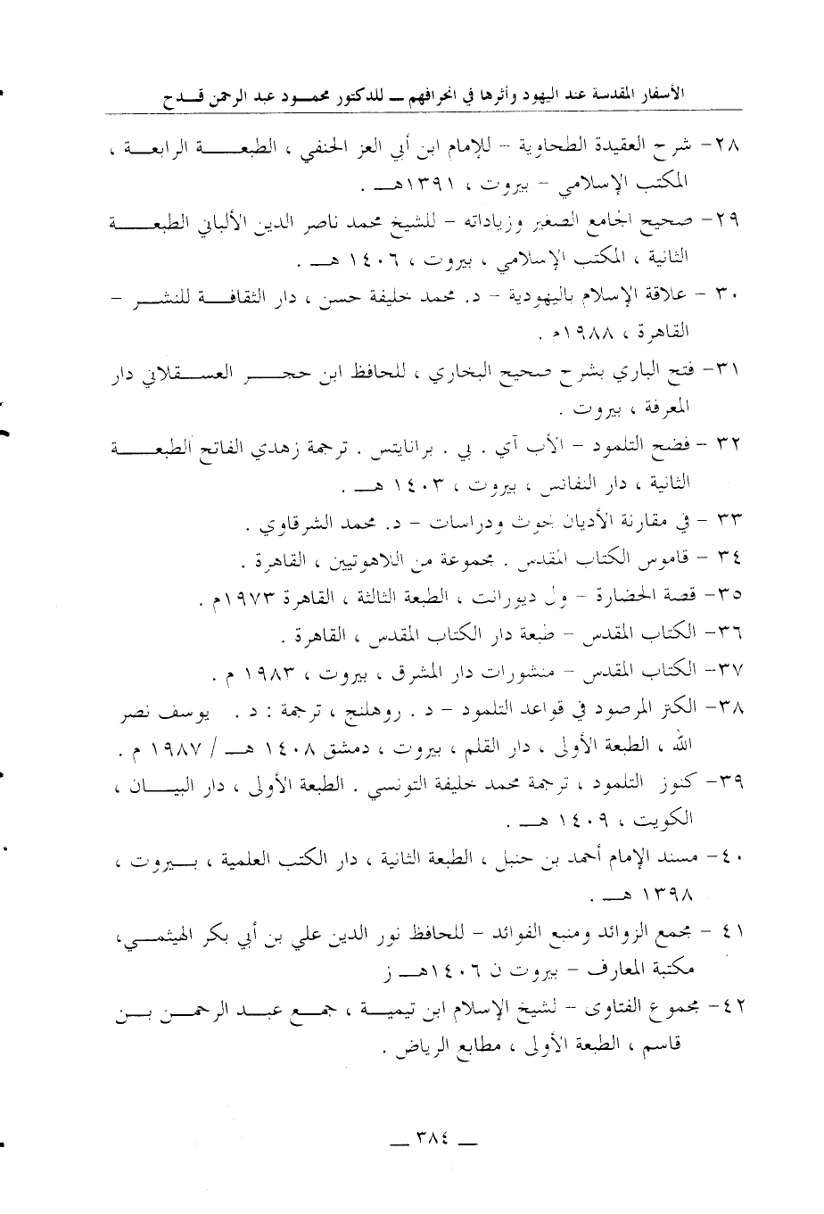 30 - علاقة الإسلام باليهودية - د. محمد خليفة حسن، دار الثقافة للنشر - القاهرة، 1988م.