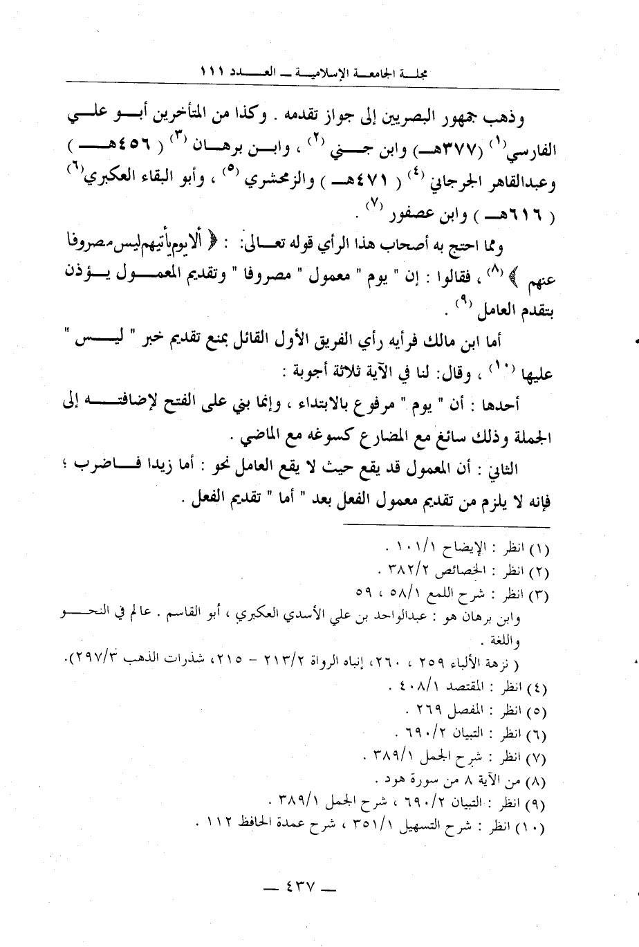 10 انظر: شرح التسهيل 1/351، شرح عمدة الحافظ 112.