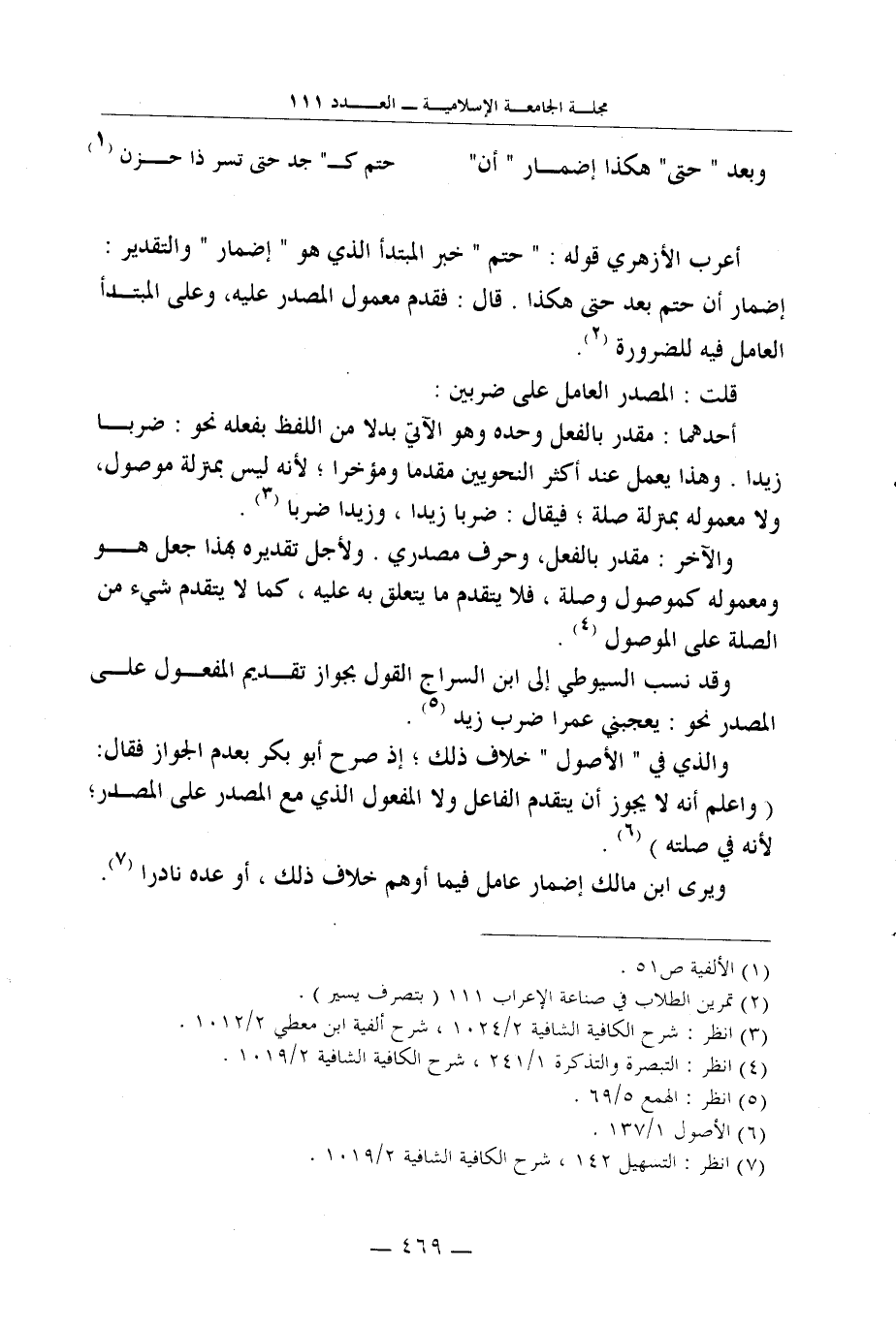 7 انظر: التسهيل 142، شرح الكافية الشافية 2/1019.