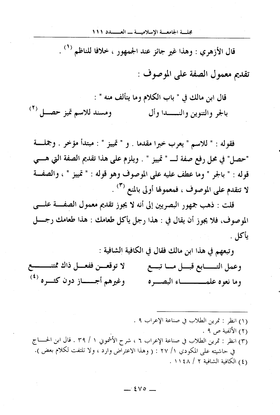 2 انظر: تمرين الطلاب في صناعة الإعراب 6، شرح الأشموني 1 / 39. قال ابن الحاج في حاشيته على المكودي 1/ 27: (وهذا الاعتراضُ وارد، ولا تلتفت لكلام بعض) .