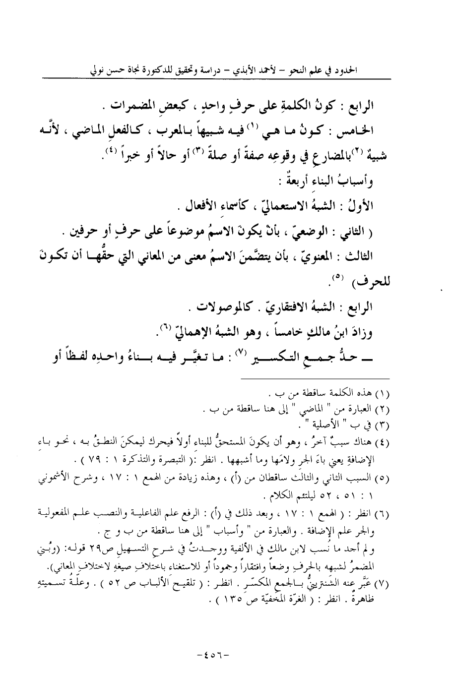 7 عَبَّر عنه الشنترينيُّ بالجمعِ المكسّرِ. انظر: (تلقيح الألباب ص 52) . وعلّةُ تسميتهِ ظاهرةٌ. انظر: (الغرّة المخفيّة ص 135) .