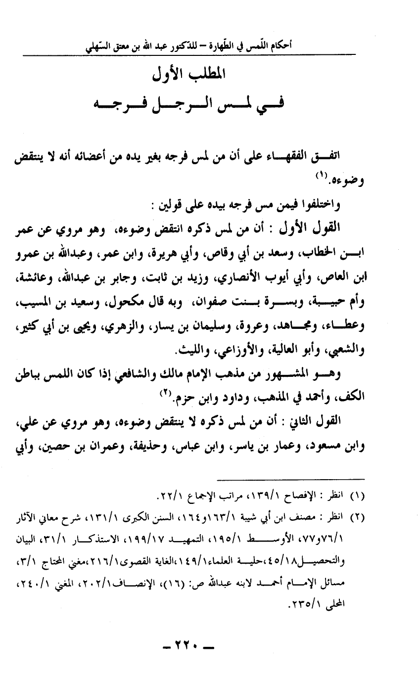 2 انظر: مصنف ابن أبي شيبة 1/163و164، السنن الكبرى 1/131، شرح معاني الآثار 1/76و77، الأوسط 1/195، التمهيد 17/199، الاستذكار 1/31، البيان والتحصيل18/45،حلية العلماء1/149،الغاية القصوى1/216،مغني المحتاج 1/3، مسائل الإمام أحمد لابنه عبد الله ص: (16) ، الإنصاف1/202، المغني 1/240، المحلى 1/235.