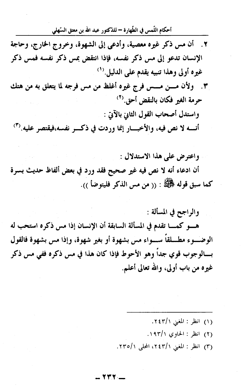 3 انظر: المغني 1/243، المحلى 1/235.