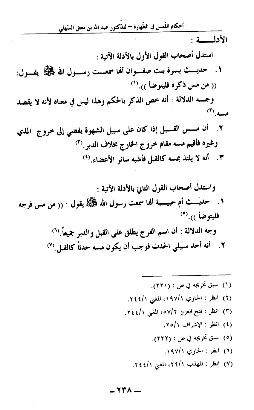 1-حديث بسرة بنت صفوان أنها سمعت رسول الله صلى الله عليه وسلم يقول: " من مس ذكره فليتوضأ" 1.