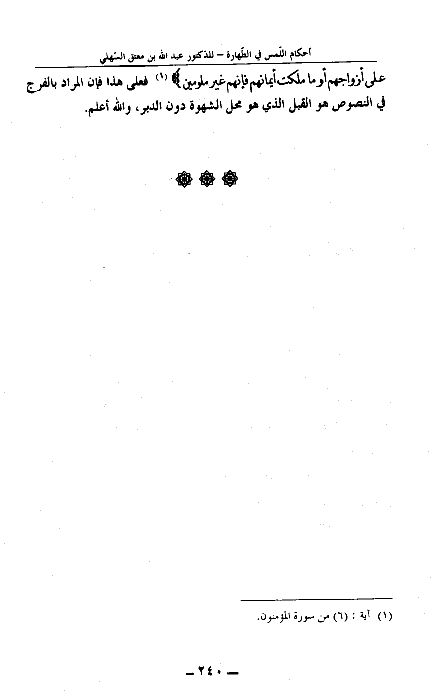 عَلَى أَزْوَاجِهِمْ أَوْ مَا مَلَكَتْ أَيْمَانُهُمْ فَإِنَّهُمْ غَيْرُ مَلُومِينَ} 1 فعلى هذا فإن المراد بالفرج في النصوص هو القبل الذي هو محل الشهوة دون الدبر، والله أعلم.