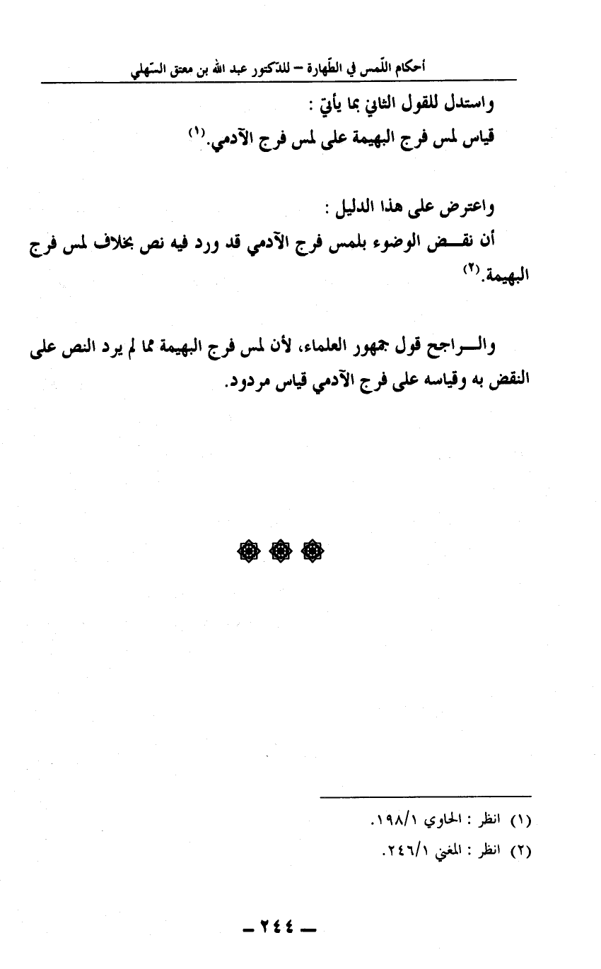 قياس لمس فرج البهيمة على لمس فرج الآدمي1.