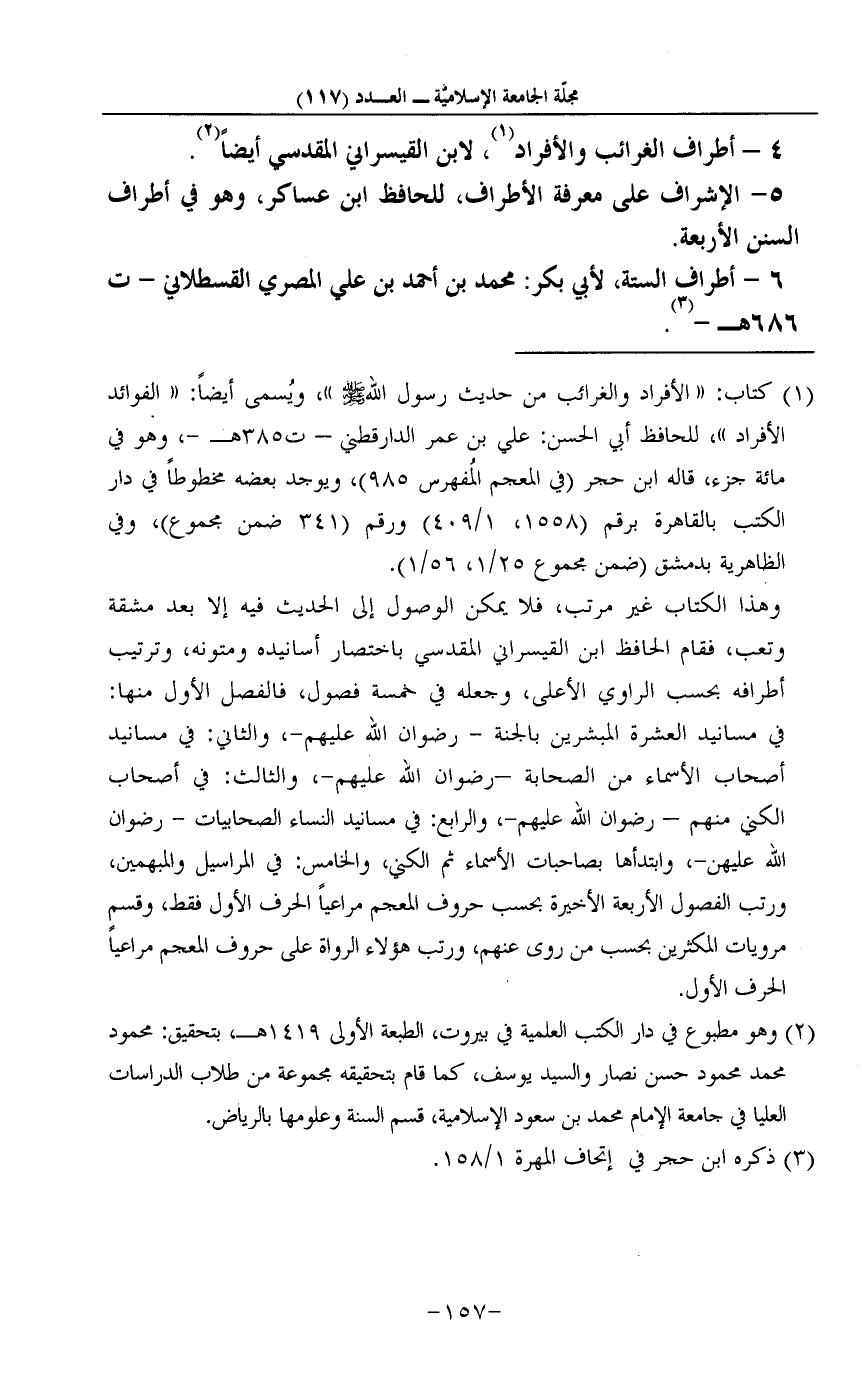 4 - أَطْرَاف الغرائب والأفراد1، لِابْنِ القيسراني الْمَقْدِسِي أَيْضا 2.