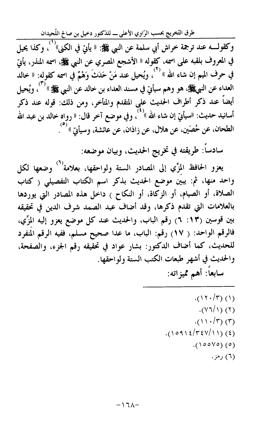 سادساً: طَرِيقَته فِي تَخْرِيج الحَدِيث، وَبَيَان مَوْضِعه: