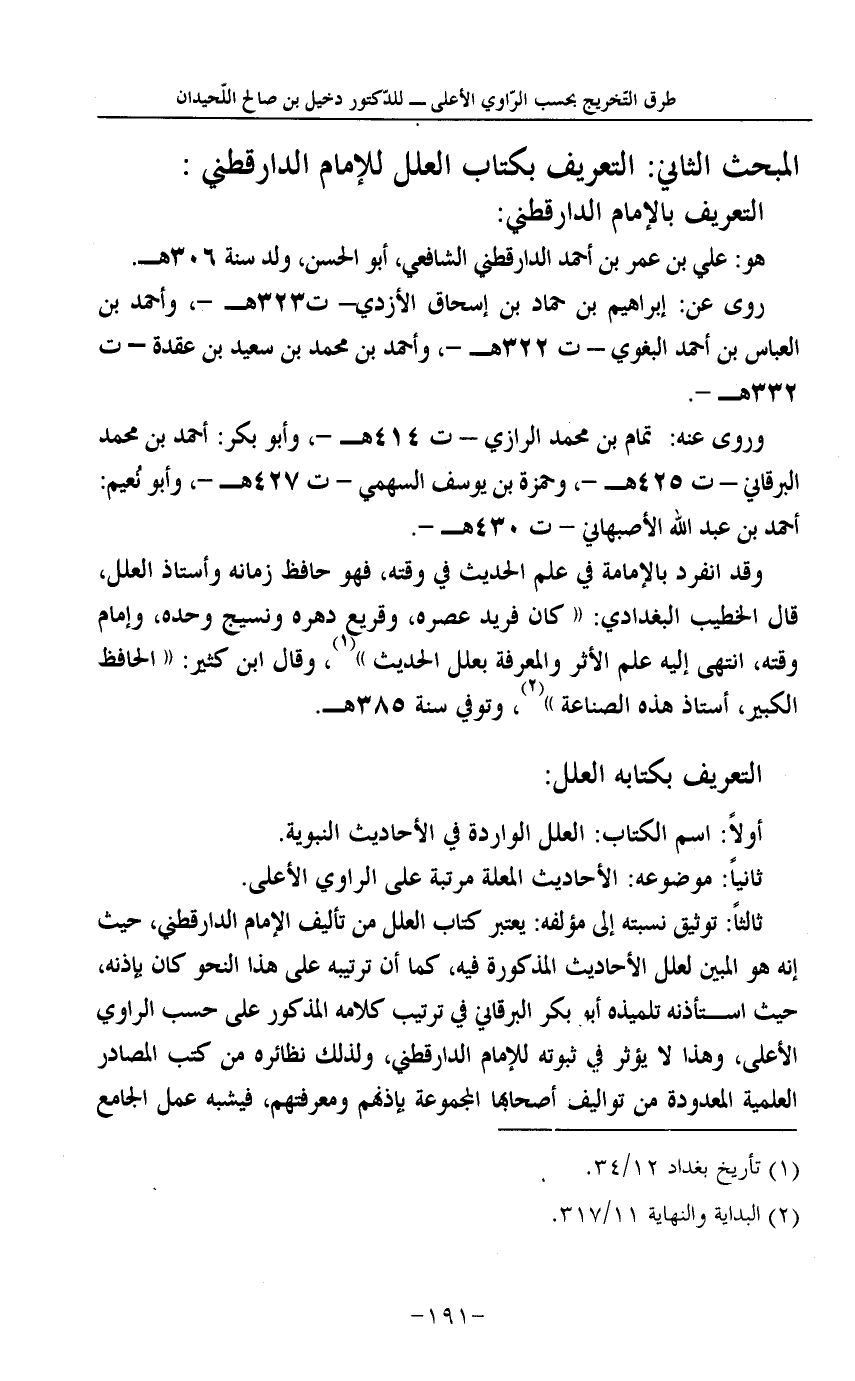 المبحث الثَّانِي: التَّعْرِيف بِكِتَاب الْعِلَل للْإِمَام الدَّارَقُطْنِيّ: