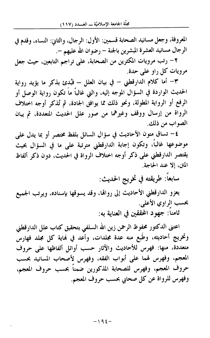 3 - أما كَلَام الدَّارَقُطْنِيّ - فِي بَيَان الْعِلَل - فبُدِئ بِذكر مَا يُؤَيّد رِوَايَة الحَدِيث الْوَارِدَة فِي السُّؤَال الموجه إِلَيْهِ، وَالَّتِي غَالِبا مَا تكون رِوَايَة الْوَصْل أَو الرّفْع أَو الرِّوَايَة المطولة، وَنَحْو ذَلِك مِمَّا يُوَافق الجادة، ثمَّ تُذكر أوجه اخْتِلَاف الروَاة من إرْسَال ووقف وَغَيرهمَا من صور علل الحَدِيث المتعددة، ثمَّ يبان الصَّوَاب من ذَلِك.