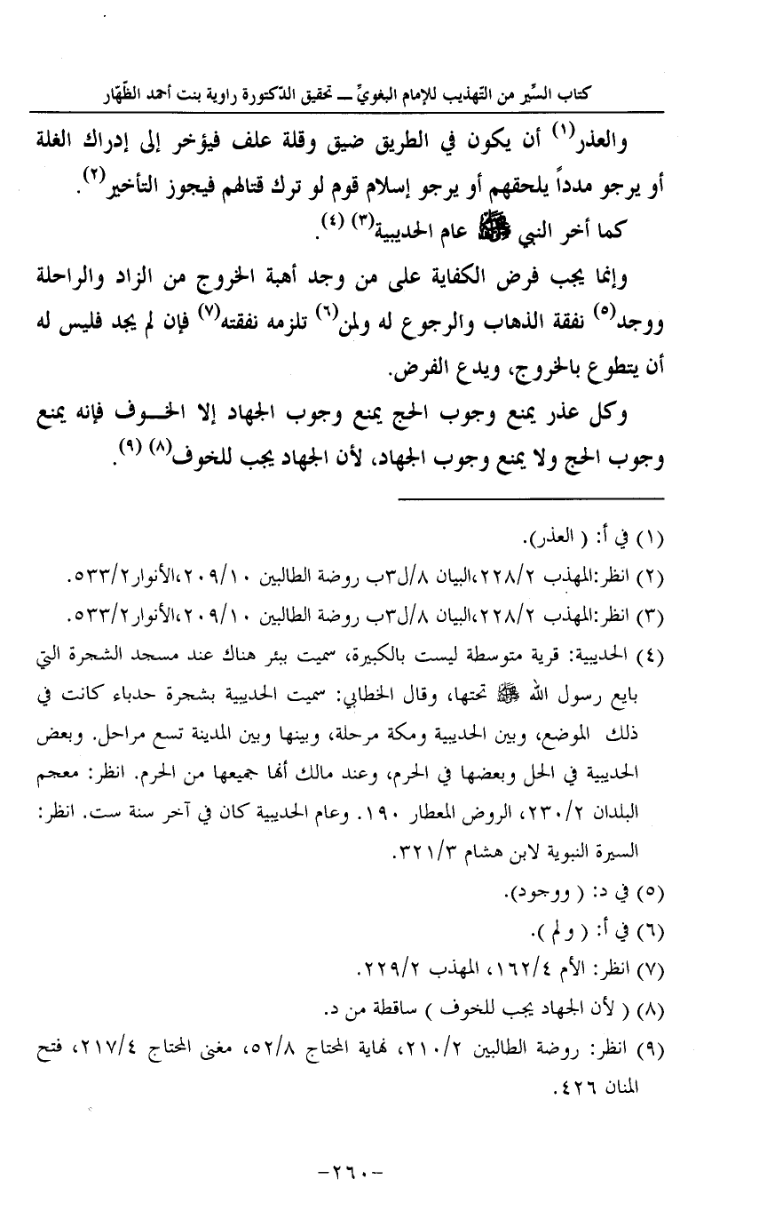 9 - انْظُر: رَوْضَة الطالبين 2/210، نِهَايَة الْمُحْتَاج 8/52، مغنى الْمُحْتَاج 4/217، فتح المنان 426.