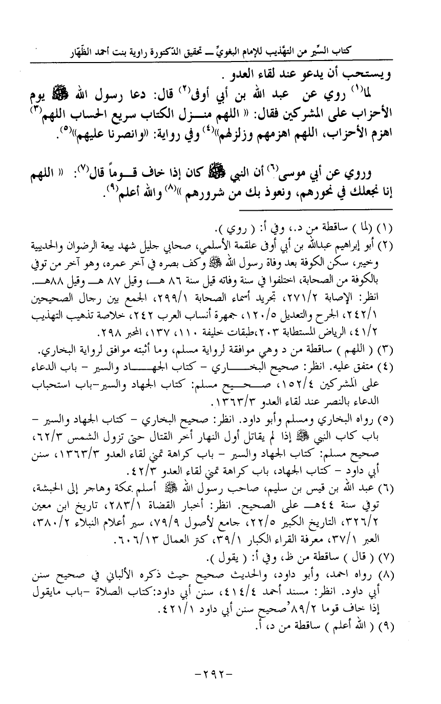 4 - مُتَّفق عَلَيْهِ. انْظُر: صَحِيح البُخَارِيّ - كتاب الْجِهَاد وَالسير - بَاب الدُّعَاء على الْمُشْركين 4/152، صَحِيح مُسلم: كتاب الْجِهَاد وَالسير - بَاب اسْتِحْبَاب الدُّعَاء بالنصر عِنْد لِقَاء الْعَدو 3/1363.