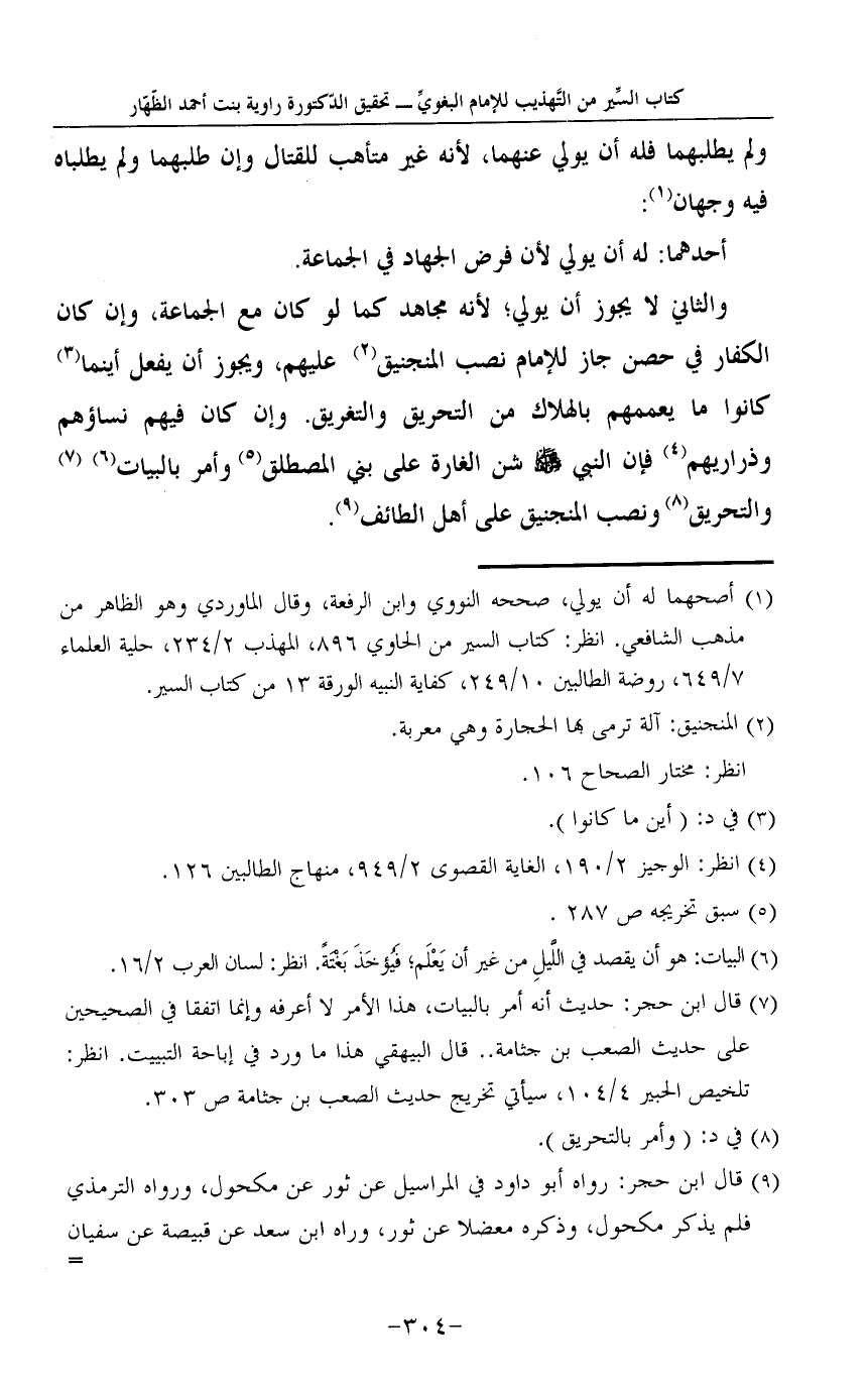 وَالثَّانِي لَا يجوز أَن يولي؛ لِأَنَّهُ مُجَاهِد كَمَا لَو كَانَ مَعَ الْجَمَاعَة، وَإِن كَانَ الْكفَّار فِي حصن جَازَ للْإِمَام نصب المنجنيق2 عَلَيْهِم، وَيجوز أَن يفعل أَيْنَمَا3 كَانُوا مَا يعممهم بِالْهَلَاكِ من التحريق والتغريق. وَإِن كَانَ فيهم نِسَاؤُهُم وذراريهم 4 فَإِن النَّبِي صلى الله عَلَيْهِ وَسلم شن الْغَارة على بني المصطلق 5 وَأمر بالبيات 6 7 وَالتَّحْرِيق 8 وَنصب المنجنيق على أهل الطَّائِف 9.